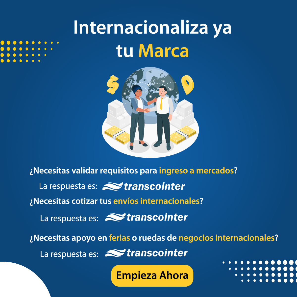 Somos una empresa de logística internacional que se fundó en Bucaramanga con el propósito de brindar apoyo y asesoría integral en comercio exterior a los empresarios locales, quienes trabajan día a día por internacionalizar sus marcas.